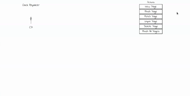 The Clock Replacer keeps tracks of all pages that are not being accessed in a circular buffer. For each page, it also keeps a reference bit to indicate if the page was recently accessed. There is a Clock Hand or Clock Pointer (CP) that iterates through the circular buffer looking for a victim.