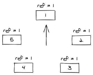 We are going to make use of an additional hash table, to make it possible to make the Remove method implementation O(1). If you add 5 elements to the cache, the FIFOqueue will look like this: