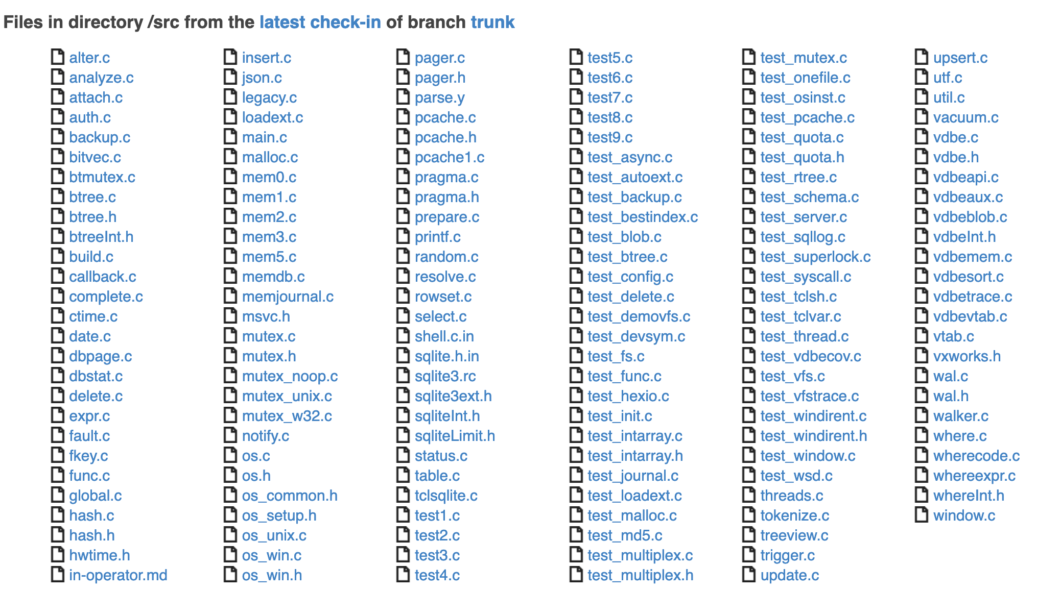 I’ve cloned SQLitesource code using fossil and started navigating the files structure.